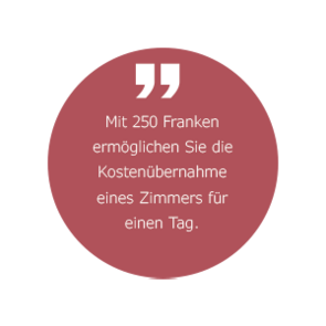 Besonders für Vereine oder Gruppen ist es ein schönes Spendenprojekt, die Zimmer-Patenschaft für einen kompletten Aufenthalt (4500 Franken) zu übernehmen.